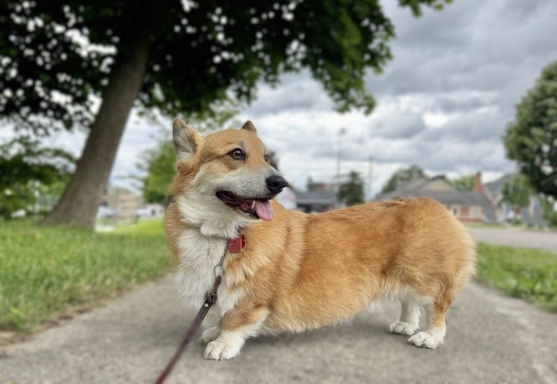 Close enough. Corgee, corky, corgilicious, hey dog, he’ll answer to anything.